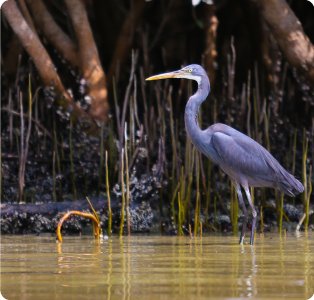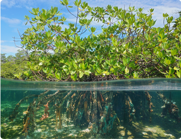 Mangroves are forests that grow between high and low tide, adapted to living in saltwater. They are highly productive and biodiverse environments, containing a wealth of species.