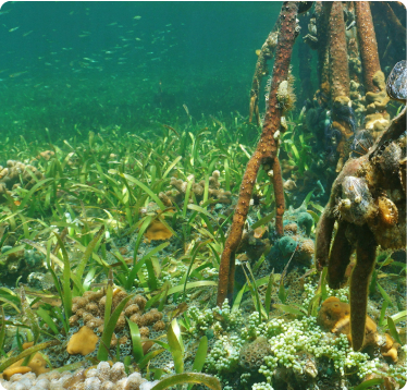 ‘Blue carbon’ environments like mangrove forests, tidal marshes, and seagrass meadows are highly efficient at capturing carbon. Mangrove forests, for example, take in carbon up to four times faster than the same area of land forest.